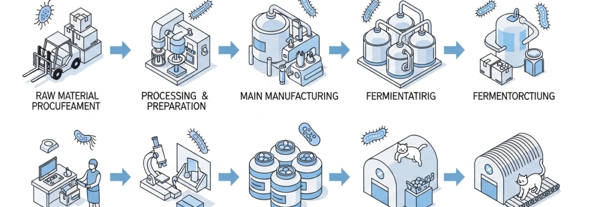자체 브랜드 반려동물 유산균 제품을 기획하다 보면, 가장 먼저 벽에 부딪히는 것이 바로 제조 설비와 공정 문제입니다. 균주를 확보했어도 배양 설비가 없고, 설비를 갖추려면 수억 원의 초기 투자가 필요합니다. 처음부터 직접 생산 라인을 구축하지 않아도 됩니다. 검증된 제조 파트너에게 위탁하는 것이 훨씬 현실적인 선택입니다.